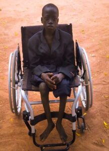 MONDAY THURUBIL RAMADAN,in his wheel chair after PSS session with a Case Worker in RUMBEK